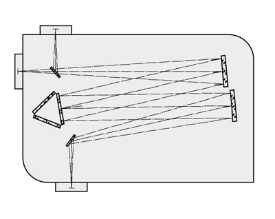 光學室和機械傳動室嚴格分開,避免后者產(chǎn)生雜散光及潤滑油微量揮發(fā)對光學件的污染