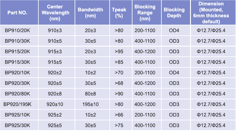 、庫存:上萬種標準及非標準帶通濾光片產(chǎn)品現(xiàn)貨供應
