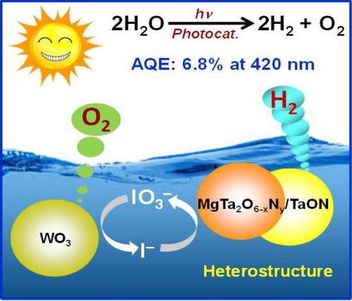 近日,中國科學院大連化學物理研究所催化基礎國家重點實驗室及潔凈能源國家實驗室太陽能研究部研究員、中科院院士李燦和研究員章福祥、陳閃山等與日本東京大學教授Kazunari Domen課題組合作,在可見光驅(qū)動光催化Z機制完全分解水制氫研究中取得進展。研究結(jié)果發(fā)現(xiàn),經(jīng)一步氮化合成的MgTa2O6−xNy/TaON異質(zhì)結(jié)材料(長可吸收波長達570 nm)可有效促進光生電荷分離,基于此異質(zhì)結(jié)材料構(gòu)筑的寬光譜響應Z機制完全分解水制氫體系,其表觀量子效率達到目前文獻報道高值(AQE: 6.8%@420 nm)。相關(guān)結(jié)果在線發(fā)表在《德國應用化學》期刊上。