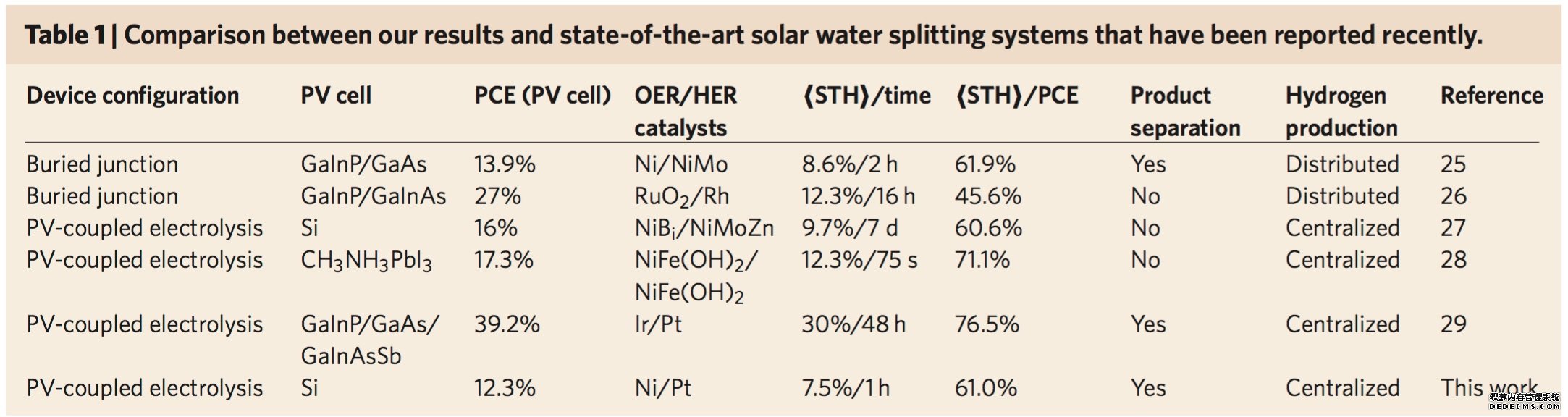 太陽能產(chǎn)氫一直是人類孜孜追求的目標(biāo)。但如何實(shí)現(xiàn)大規(guī)模持續(xù)、廉價(jià)產(chǎn)氫是為棘手又亟待解決的問題。在傳統(tǒng)電解槽結(jié)構(gòu)中,產(chǎn)氫和產(chǎn)氧在同一槽中。但這一方式在光電產(chǎn)氫領(lǐng)域受到了大的限制。如何整合太陽能的轉(zhuǎn)化與電解水產(chǎn)氫成為關(guān)鍵。本文中,作者通過分離產(chǎn)氫、產(chǎn)氧過程,并利用輔助電作為“調(diào)節(jié)劑”,成功實(shí)現(xiàn)大面積太陽能轉(zhuǎn)化與集中式產(chǎn)氫,太陽能產(chǎn)氫轉(zhuǎn)換效率達(dá)到7.5 %。同時(shí),較之傳統(tǒng)光電化學(xué)體系,該方法在成本、安全性以及穩(wěn)定性上都具有一定的競爭優(yōu)勢。